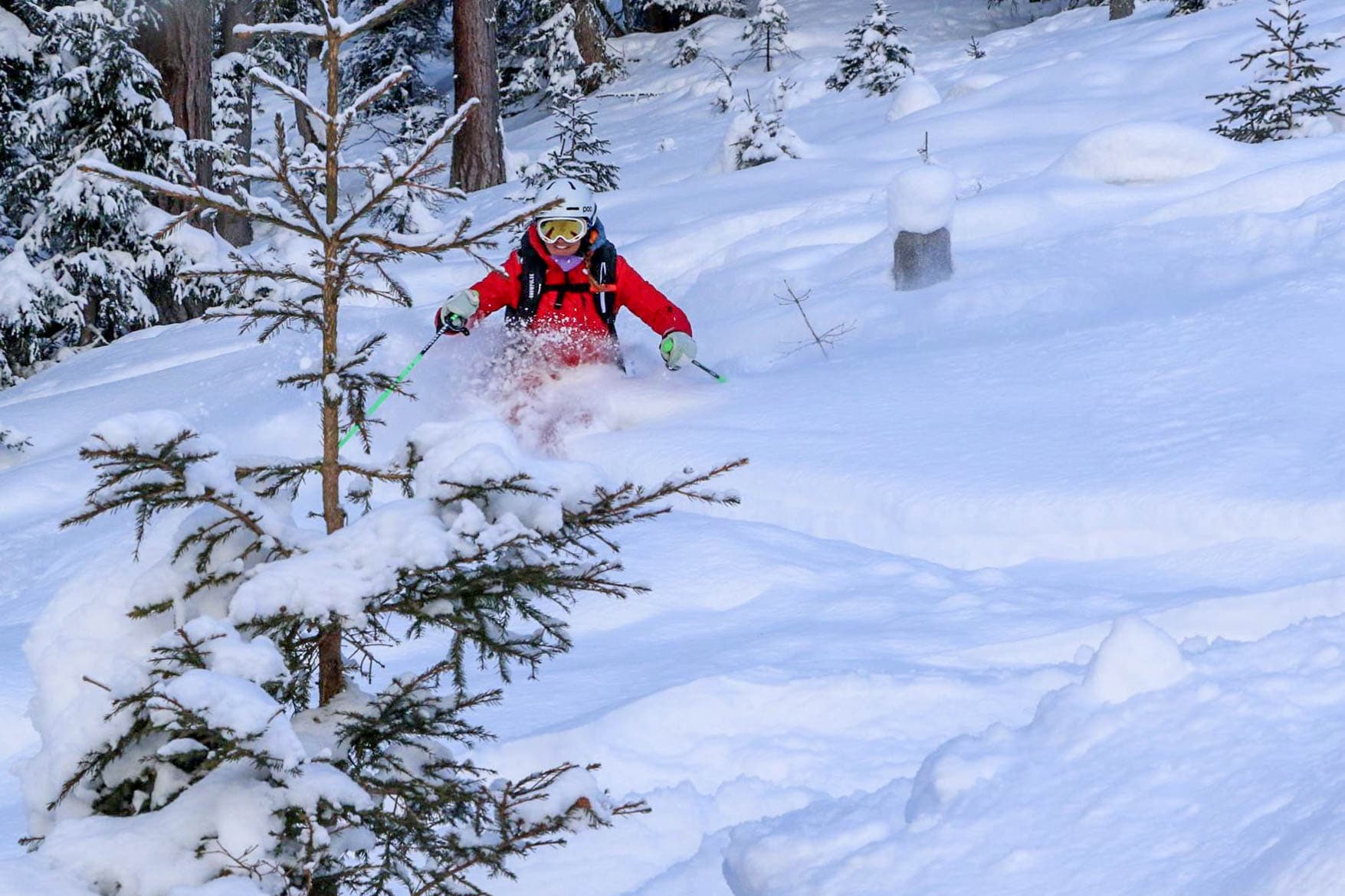 Buiten de pistes was het heerlijk skiën, en dat hadden niet alleen de skileraren door. Ook de toeristen melde zich massaal bij de skischolen voor skilessen buiten de gezekerde pistes.