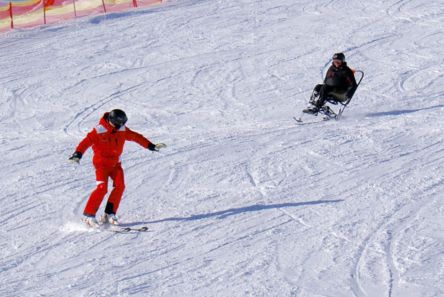 Een mono-ski is een zitkuip op een verend frame. De onderkant van het frame heeft dezelfde afmetingen als een skischoen waardoor het frame op een “normale” alpine ski geplaatst kan worden. Het evenwicht wordt bewaard door twee korte armkruk-ski’s. Een mono-ski biedt uitkomst aan mensen met een dubbele been amputatie, dwarslaesie, knie en loop problemen, functie verlies in de benen etc.