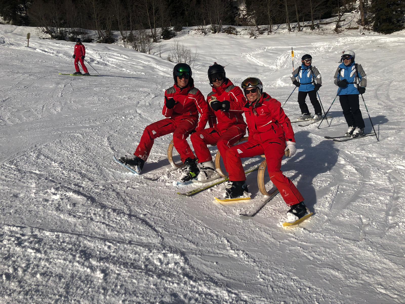Hebben skileraren dan ook nog weleens vrije tijd? Jahoor! We vinden vaak iedere dag wel eventjes de tijd om een drankje te drinken en een dansje te doen in de après-ski. Op mijn vrije dag ben ik vaak gewoon op de piste te vinden om zelf een rondje gas te geven, te leren snowboarden, skifoxen (zie foto bovenaan dit verhaal) of een afdaling te maken met maar één ski aan. Kortom: het was weer een fantastische week, op naar de volgende!