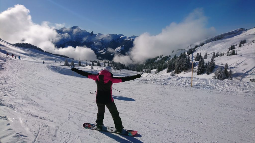Op dag 1 moeten we om om 8.30 verzamelen onderaan de gondel in skigebied Mellau-Damüls (Vorarlberg). Vandaag is het voor veel skileraren ook een belangrijke dag: voor hen staat het 4-jaarlijkse “herhalingsweekend” op het programma. Ik zie dan ook veel collega’s uit mijn skischool en vergeet me haast te melden bij de snowboardgroep. Het valt me gelijk op dat er maar weinig snowboarders zijn. We zijn met zijn achten, een klein groepje dus! Tijdens het voorstellen herken ik een groepsgenoot, wij hebben samen drie jaar geleden de Anwärter Ski gedaan. Het is dus meteen gezellig!