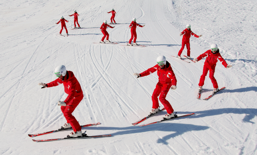 Door de skiër twee vuisten te laten ballen wordt de lichaamsspanning ondersteund. Dit kan in het bijzonder goed worden toegepast bij het skiën van korte bochten.